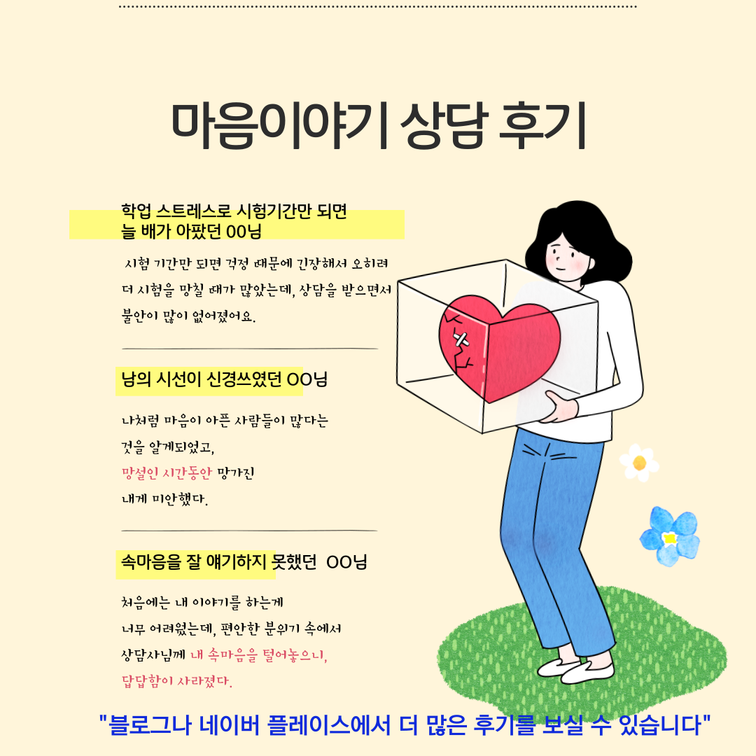 그 과정에서 마음이야기 심리상담센터의 도움이 필요하시다면 언제든지 문의해주세요.